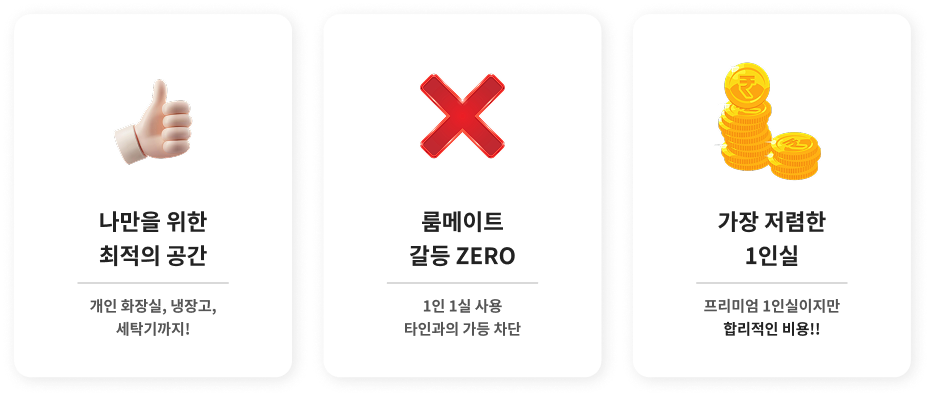 프리미엄 1인실! 갈등 없이