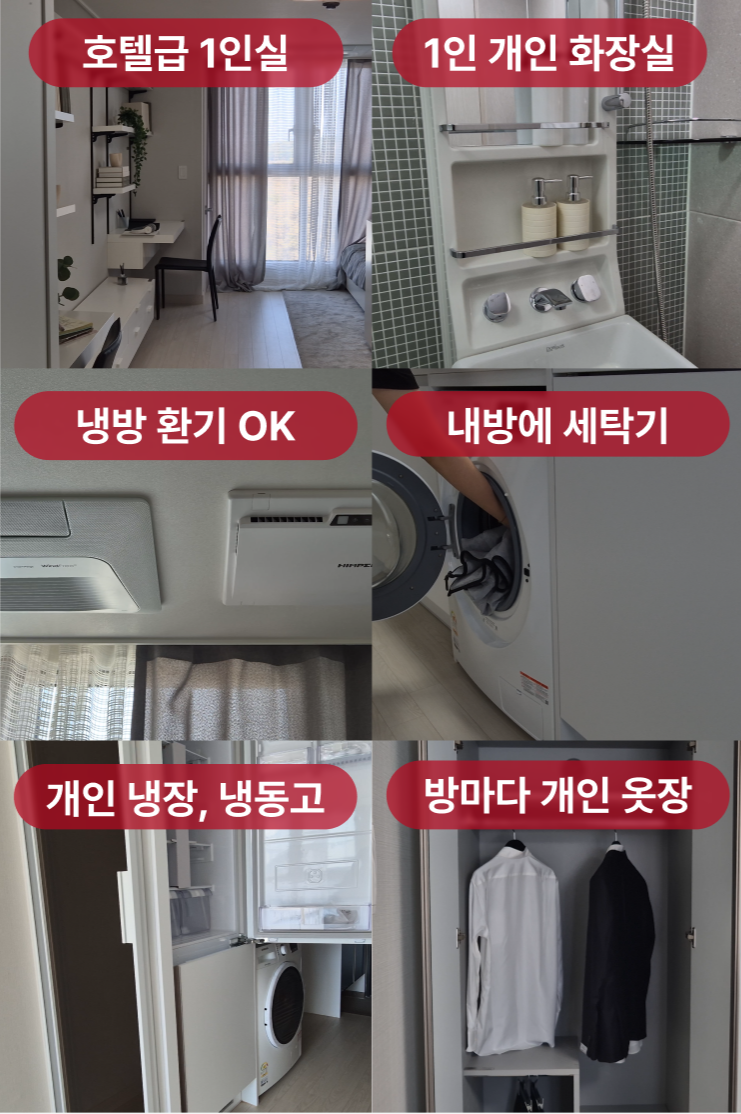 냉장고 + 세탁기 + 샤워실 + 화장실